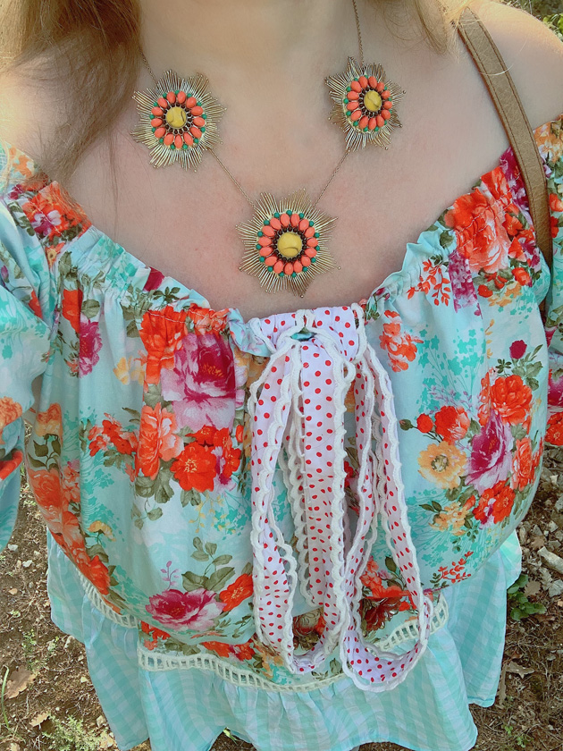 En effet, elle cumule les inconvénients avec son nœud à pois, son motif fleuri