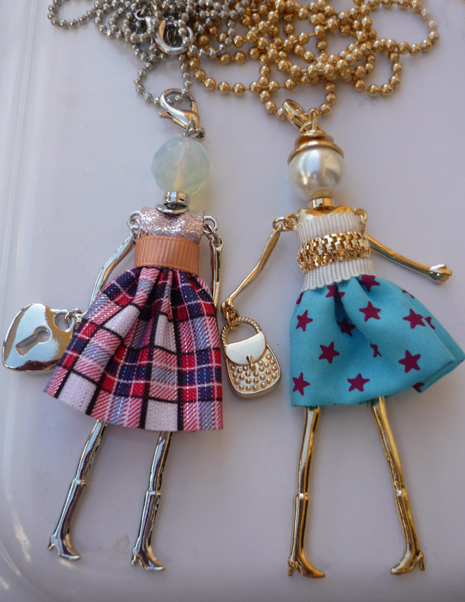 Mon cœur s’est arrêté quand j’ai vu en vitrine mes poupées, vous savez ces petites femmes chics en sautoirs que j’ai plébiscité tout l’hiver. On les trouve à 29,90€ partout. J’étais trop fière d’en avoir achetée à 19.90€ et bien Mary Jane les vend à 5.90€!!!! Du coup, j’en ai pris 3, ça parait beaucoup mais ce fut un dilemme terrible à faire parmi la vingtaine de modèles.
