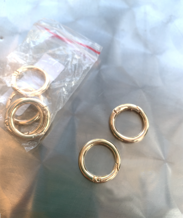 Dès son achat, j’ai donc commandé des anneaux dorés mousquetons.