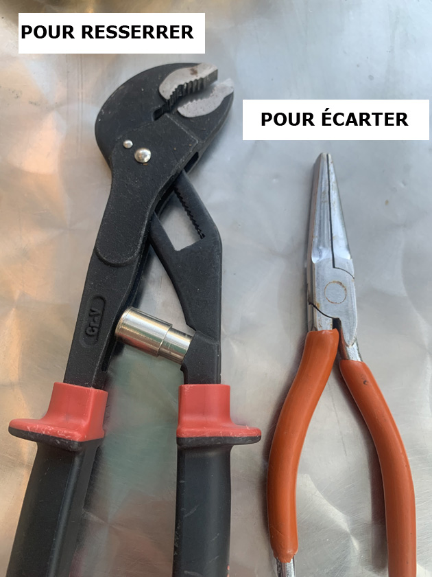 Ça vous permettra de libérer la anse d’origine. Avec la pince pour resserrer, on