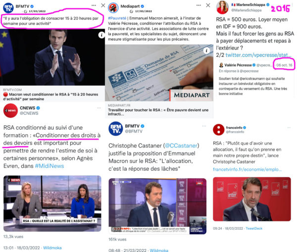 Au cœur de son programme, Macron prévoit que le RSA soit conditionné à un minimum activité. J’en vois se réjouir « il faut bien les remettre au taff ses salauds de profiteurs du système« , ce sont souvent les mêmes qui appellent à faire barrage à Marine pour « sauver l’avenir« … Je crois que ces gens souffrent surtout d’une grande ignorance. Entre 30/50% des gens au RSA le sont soit pour des ennuis de santé non reconnus MDPH/SS ou pour s’occuper d’une personne en souffrant. Au moins 30% le sont par exclusion du système (analphabétisme numérique, illettrisme). Ne vous leurrez pas, si demain ces gens devaient être dans l’obligation de travailler pour toucher le RSA, 70% en serait dans l’impossibilité et perdraient tout droit de survivre. C’est une sorte d’euthanasie passive. Quant à tous ceux qui pourraient y prétendre, ne vous réjouissez pas non plus. Votre patron préférera mille fois donner du boulot à un mec au RSA pour 3 francs six sous sans cotisations sociales (mieux qu’un stagiaire ou un service civique) que de re-signer votre CDD ou mission d’intérim, et vous finirez par émarger à « France Travail », vous plaçant dans la position inconfortable de ceux que vous stigmatisiez la veille.