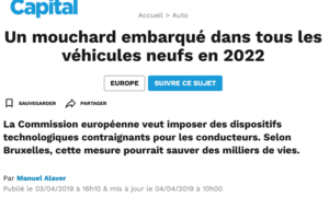 En 2023, nos véhicules neufs devront être équipés de mouchards embarqués (2024 pour les occasions). « Reliés par GPS, ils seront capables de ralentir automatiquement le véhicule en cas de dépassement de la vitesse autorisée ». Ce dispositif coercitif européen est présenté pour « sauver des vies ». Si on venait à le relier au pass dans le futur portefeuille numérique prévu en 2025, il pourrait servir à vous interdire de prendre le volant si vous avez zappé votre Xème dose de rappel.