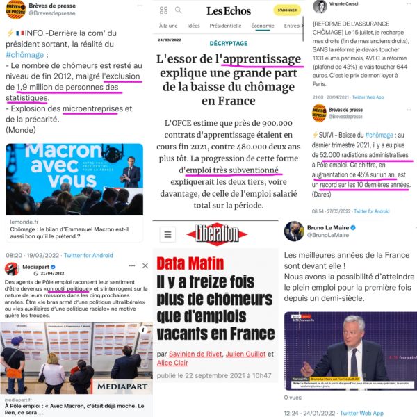Le droit du travail a été aboli et réduit à la tolérance de l’esclavage moderne néolibéral. On dit que le chômage a été réduit drastiquement, il n’en est rien. Des lois ont été instituées pour financer l’apprentissage des jeunes, ce qui ne coûte presque rien au patronat et sort les étudiants désœuvrés des statistiques. C’est l’État qui banque, donc nous. On promeut l’auto-entreprenariat qui sort des chiffres des milliers de gens œuvrant pour moins d’un SMIC sans cotiser à rien. Si on rajoute à ça les radiations administratives massives de Pôle Emploi, oui, les chiffres ont effectivement drastiquement baissé mais pas pour créer de l’emploi, mais pour paupériser la Société. Derrière les chiffres, il y a des vies brisées. 400 000 personnes de plus ont basculé dans une grande précarité. La promesse suprême de Macron lors de sa première campagne électorale était pourtant en faveur des pauvres et des SDF qu’on devait aider à sortir de la rue. On avait compris alors qu’ils seraient pris en charge, nous n’avions pas percuté qu’ils seraient cordialement invités à crever plus rapidement pour invisibiliser le problème…