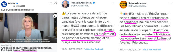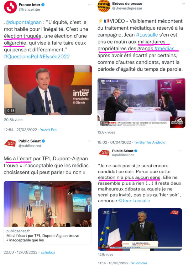 Aux gens qui prétendent qu’à partir du moment où nous avons des élections organisées, cela prouve que nous somme bien en démocratie, je leur rétorque que la Chine et la Russie aussi en sont pourvues. La seule différence est qu’ils savent à l’avance qui sera élu. Aujourd’hui, il faut se montrer lucide, il en est de même pour nous. Nous savons tous, sans jamais oser le dire, que les petits candidats n’ont AUCUNE chance d’être élus. Aucune. On s’interroge même parfois sur la raison qui les ont poussés à se présenter malgré tous les obstacles rencontrés, la difficulté de récolter les 500 signatures de maires (qui témoignent à chaque fois recevoir des pressions politiques concernant leur choix)… Sans compter les frais que cela engendre car à moins de 5% de voix, la campagne ne peut leur être remboursée par l’État.