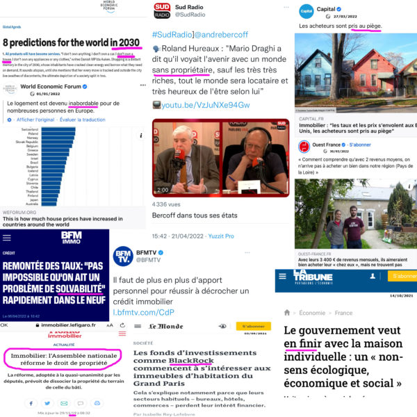 En 2019, Macron a fait voter la loi Lagleize qui mettrait fin (en partie) au droit à la propriété en dissociant le bâti du terrain. Elle permet une facilitation du droit de préemption et d’expropriation. Cela a été stoppé avec la crise des gilets jaunes + covid. Ne pensez pas qu’elle soit à l’abandon mais juste en « pause ». C’est une volonté du WEF dont Macron est issu de la promotion 2016 des Young Global Leaders, dans le programme mondial « 2030 Agenda » que la propriété ne soit accessible qu’à une infime minorité de gens « In 2030, you’ll own nothing and you will be happy« . Pour l’instant, les multiples lois votées, le rehaussement des taux d’intérêts, l’augmentation des charges fixes a remis sur le marché un grand nombre de biens (dont les passoires thermiques). Cela ne durera pas. Aux USA, Canada, Australie, le constat est déjà fait qu’il devient impossible pour la classe moyenne de se loger. Les jeunes actifs ont beaucoup moins de facilités que leurs ainés pour devenir primo-accédant.