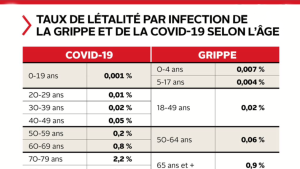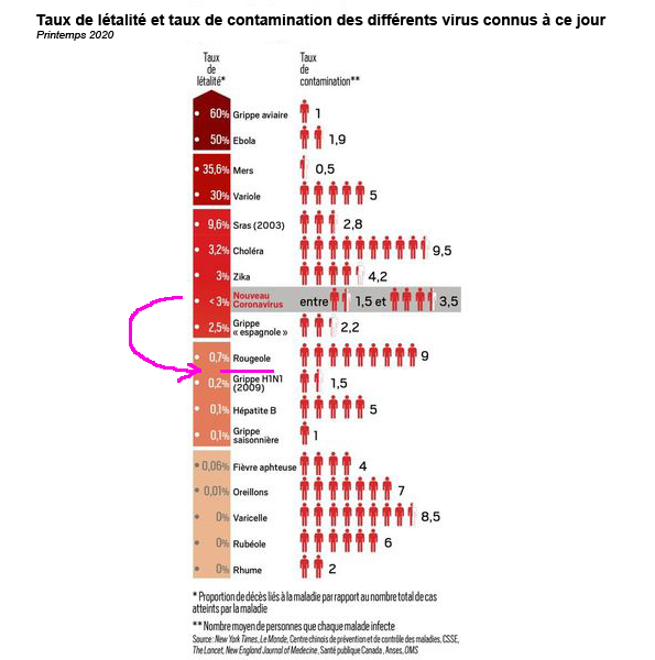 Voyez par vous même, on est juste en dessous de la létalité de la ROUGEOLE,