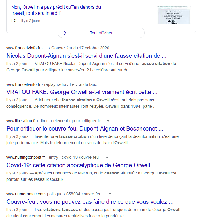 • Et enfin, que vous aurez à respecter un couvre-feu vous imposant d’être chez vous entre 21h et 6h, vous laissant tout de même libre d’accomplir vos devoirs républicains, à savoir d’aller travailler et de consommer