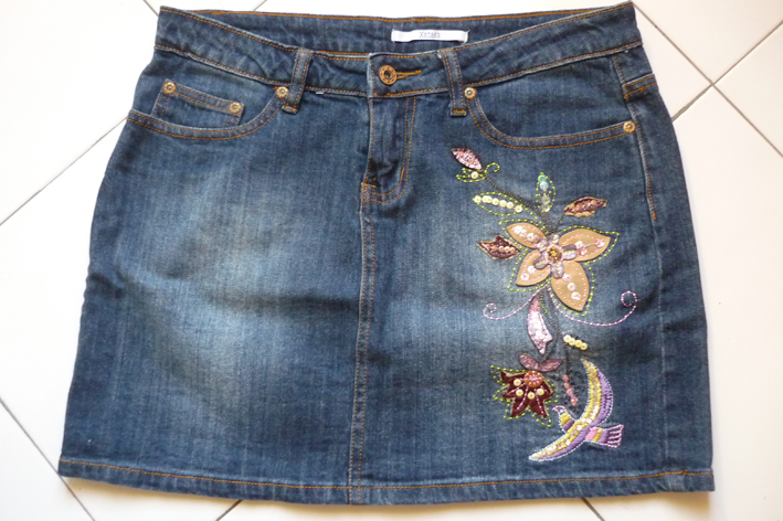 Mini jupe en jean brodée T36 Xanaka : 10€