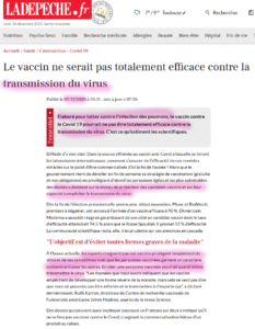La Depeche 071220 Le vaccin ne serait pas totalement efficace contre la transmission du virus 18 janvier 2021Crystila