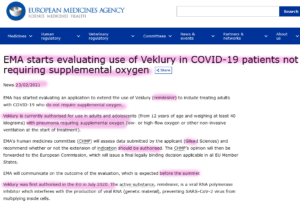 EMA 230221 starts evaluating use of Veklury in COVID-19 patients not requiring supplemental oxygen – Europea[…] 6 avril 2021Crystila