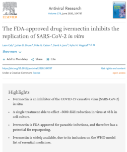 FDA june20-approved drug ivermectin inhibits the replication of SARS-CoV-2 in vitro 29 avril 2021Crystila