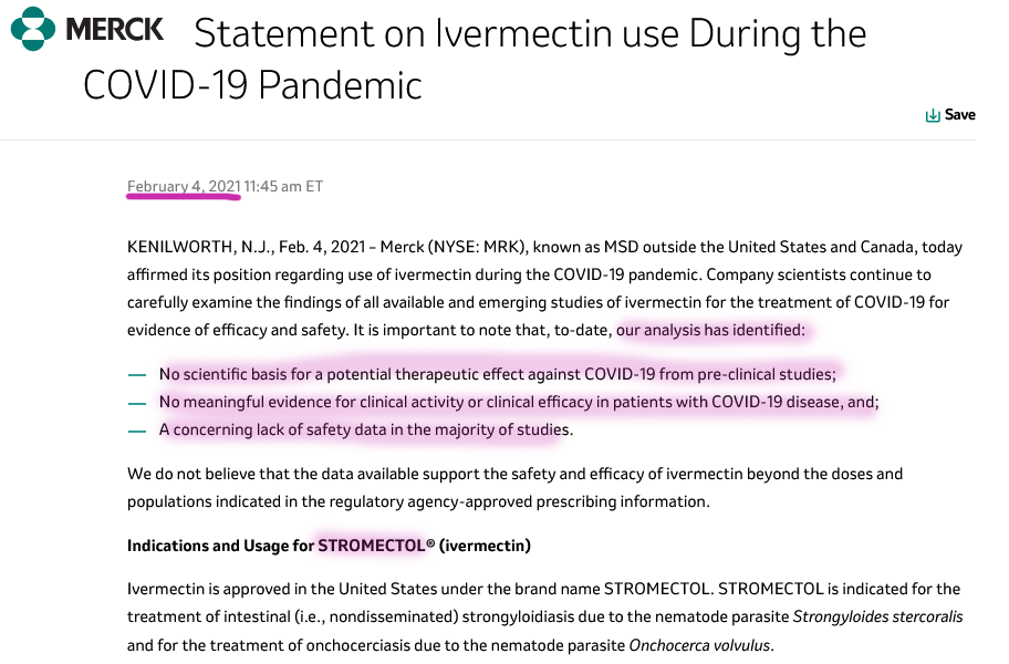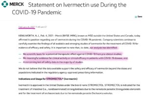 Merck 040221 Statement on Ivermectin use During the COVID-19 Pandemic – Merck com 14 mai 2021Crystila