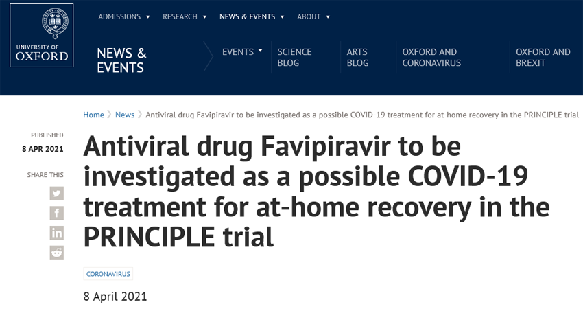 Avigan Favipiravir to be investigated as a possible COVID-19 treatment for at-hom[…] 27 juin 2021Crystila