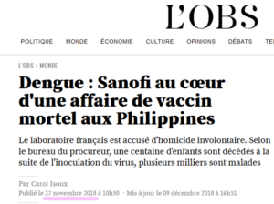 l obs 27112018 Dengue Sanofi au cœur d’une affaire de vaccin mortel aux Philippines copie 25 septembre 2021Crystila