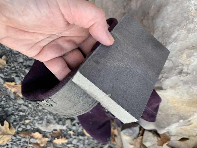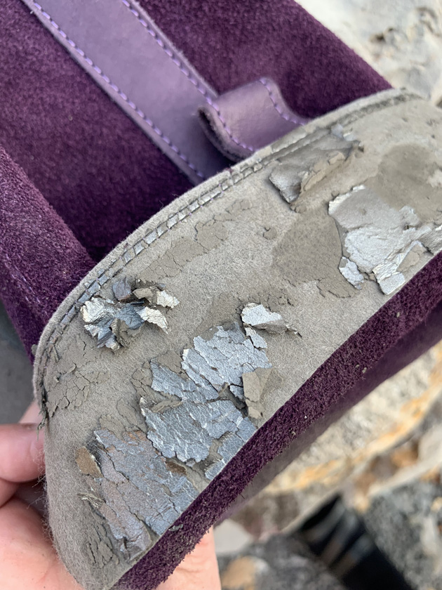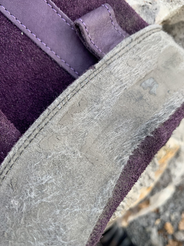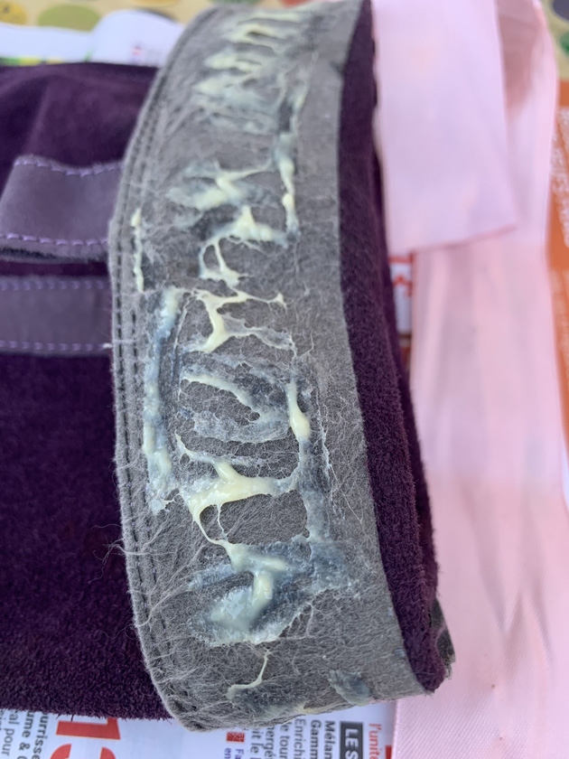 On retourne le haut de la botte et on ponce la bande qui s’émiette.