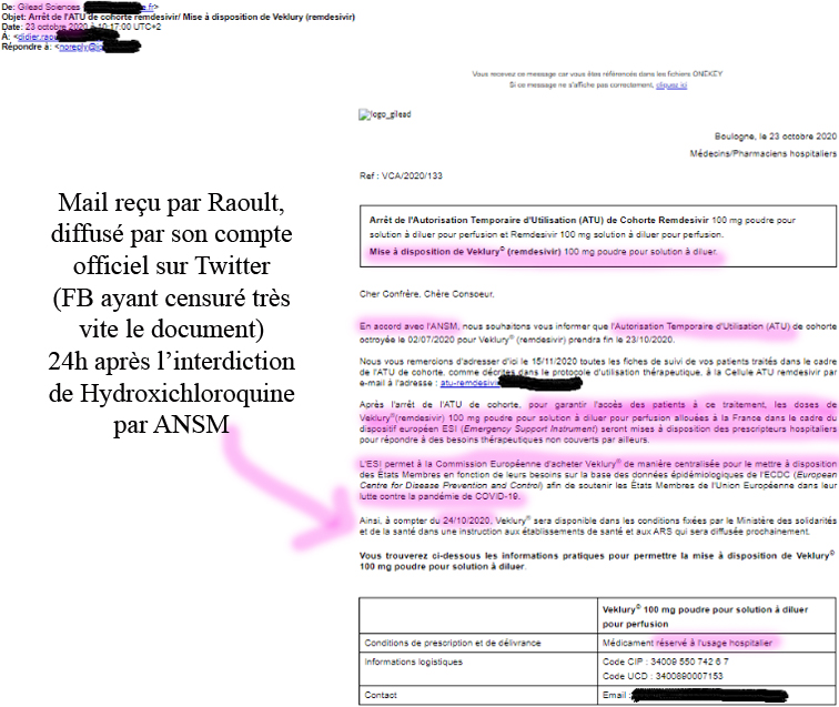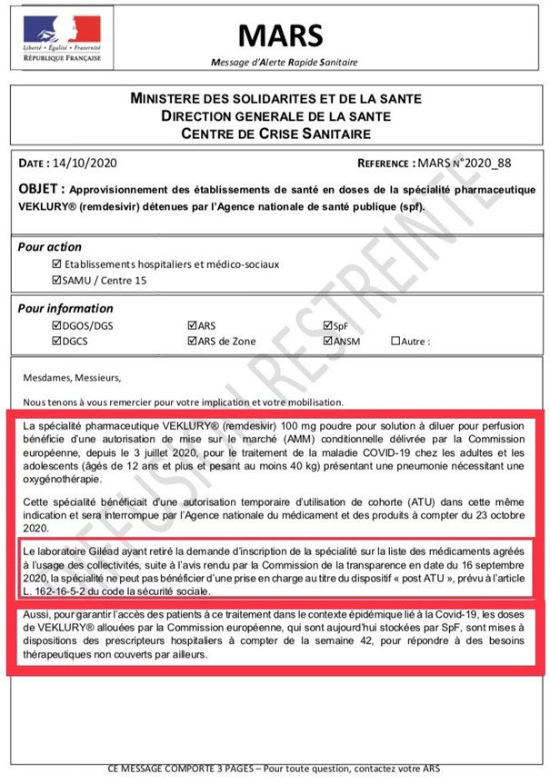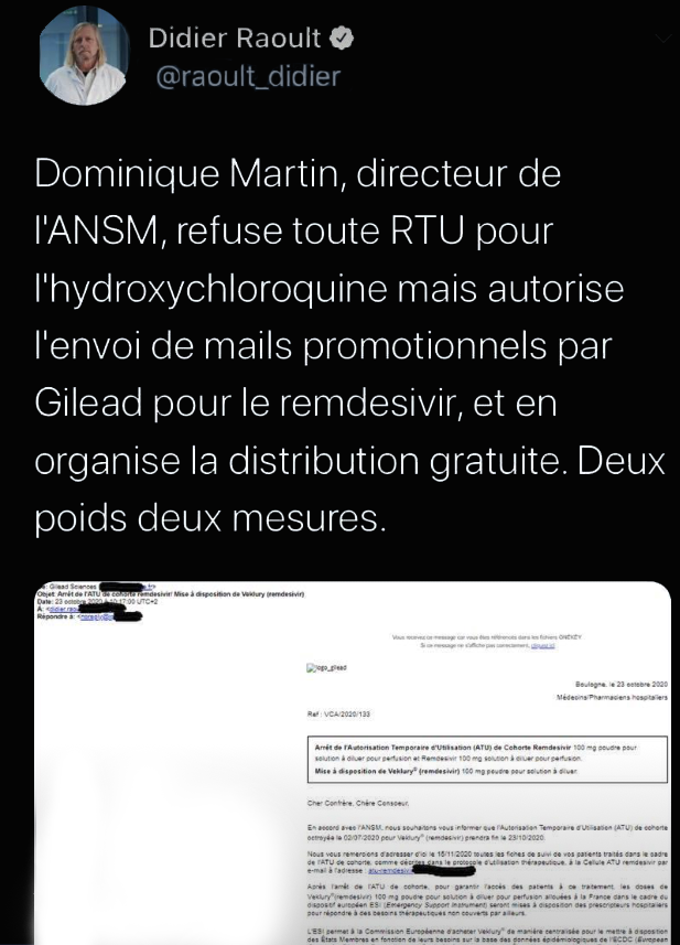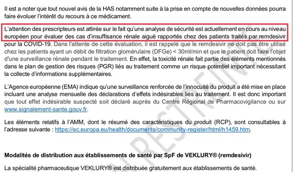 Bizarrement, dès le lendemain, le Remdesivir (nom commercial VEKLURY,