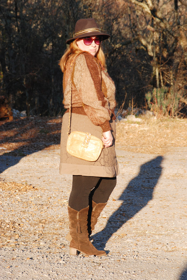 Je l’ai associé à ma vieille jupe IKKS et à des bottes chaudes