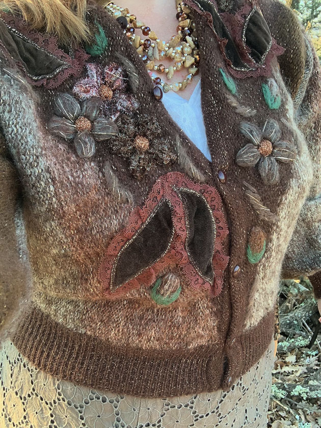 J’ai déniché ce gilet vintage assez travaillé, avec des