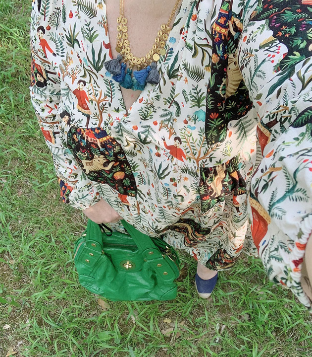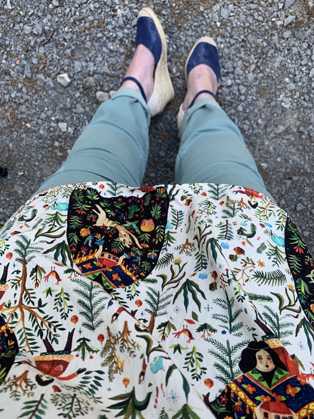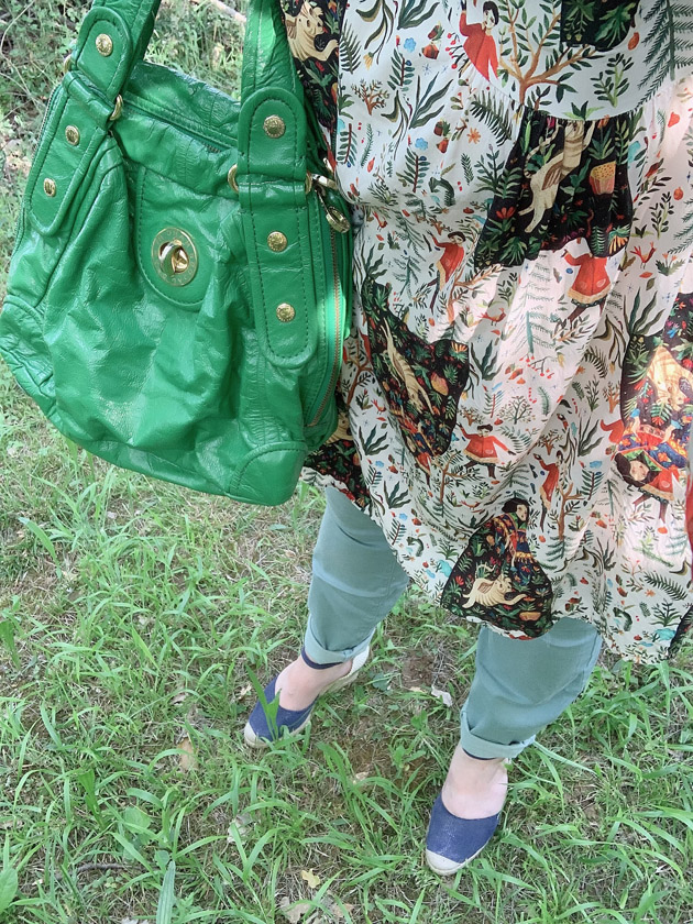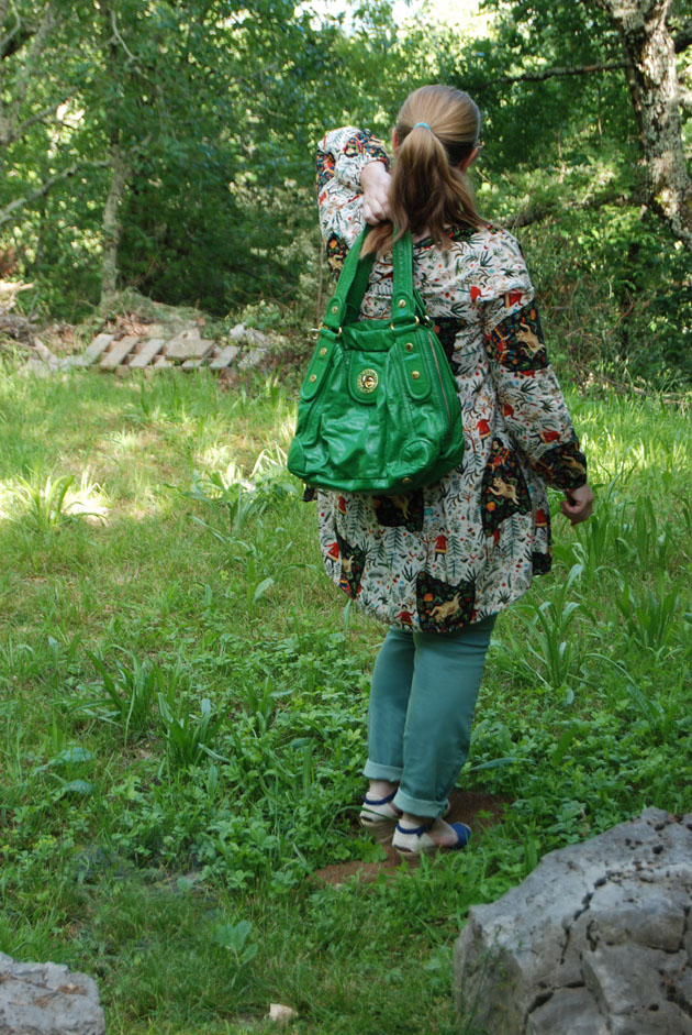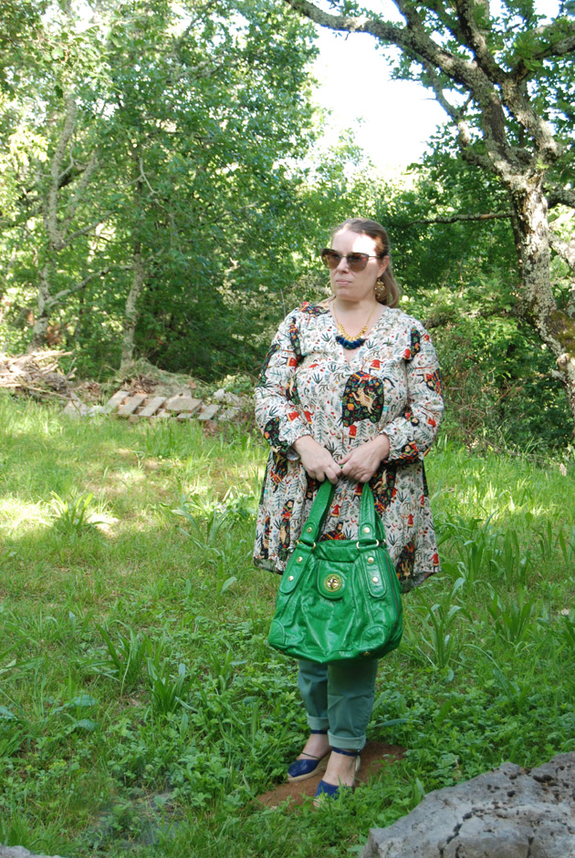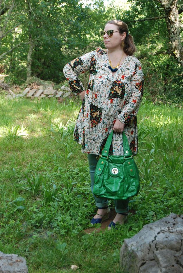 Je porte une tunique/robe avec un motif petit chaperon rouge
