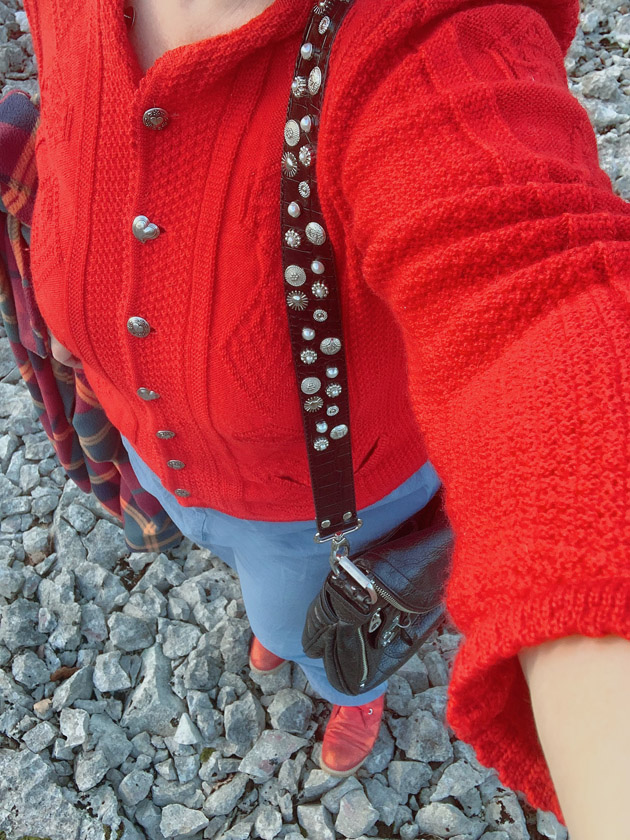 portée, un gilet un peu style autrichien Otto Hundt déniché sur vinted.