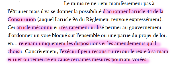 arbitraire de l’article 44 de la Constitution permettant de bloquer les votes
