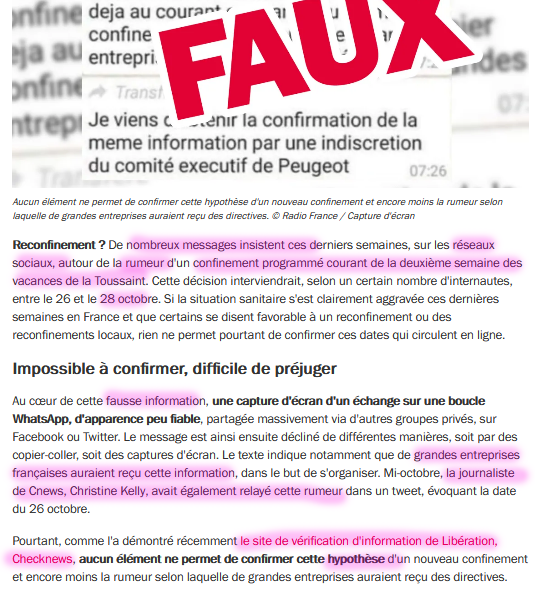 si la rumeur ayant parcouru le web (classifiée fake news le 25/10 par