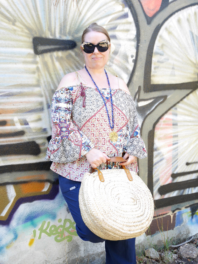Mon point de départ compo-look fut mon sac cabas Téo Jasmin (modèle Colette) car je sais qu’à la foire j’ai besoin d’un grand contenant.