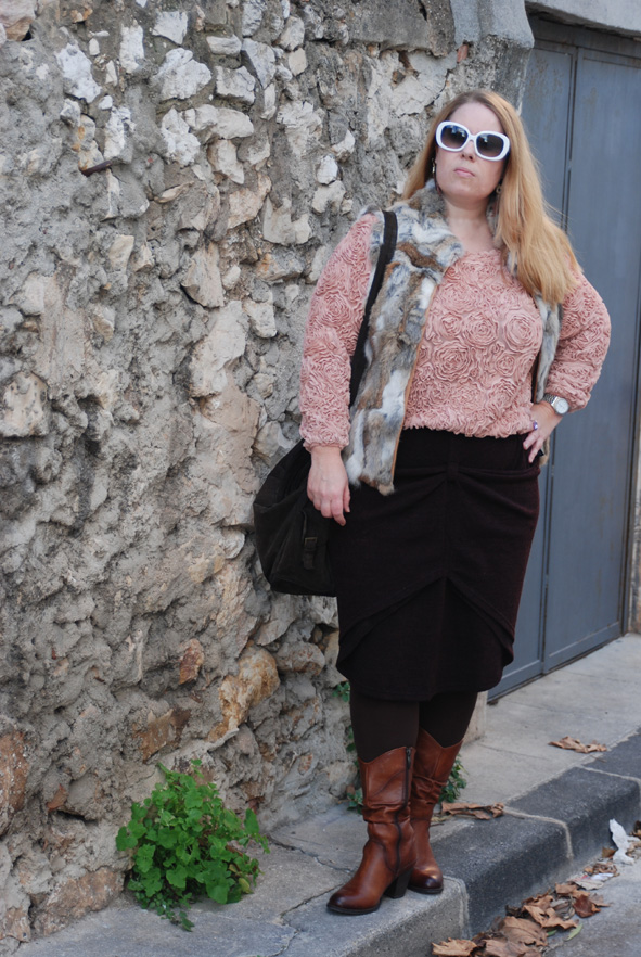J’ai choisi de mettre mon joli top Americain Apparel et ma toute nouvelle jupe Tcheka dénichée lors de la dernière vente Aides. Une paire de bottes pour la journée que j’ai remplacées par des escarpins le soir venu.