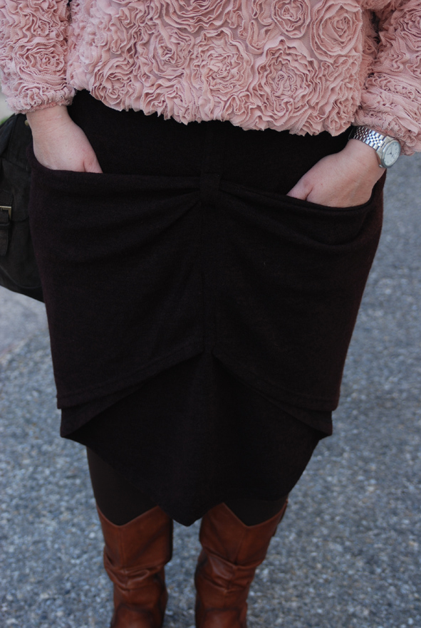 RIP à ma jupe H&M que je vous remontre dans ce look car je l’ai trouée accidentellement aux fesses (c’est ballot ça). Elle était tellement confortable…