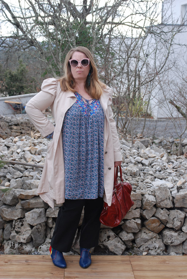 kaki, un pantalon classique marine et des vieilles Tamaris qui m’ont faite suer.
