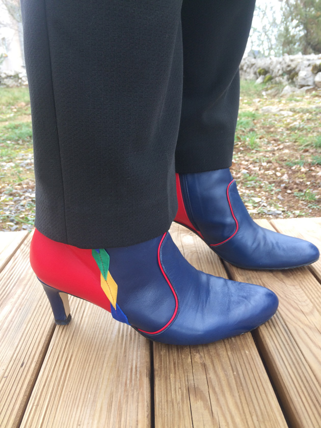 Je suis demeurée dans un camaïeu de couleur rouge/vert/bleu avec mon