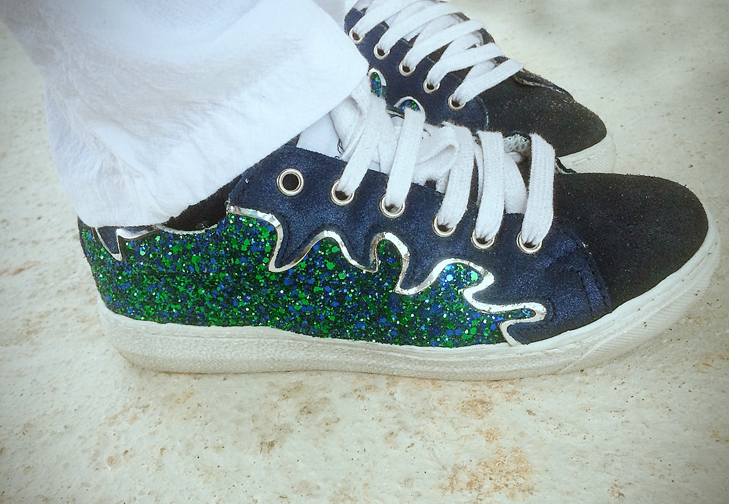 Rien de neuf pour le reste, un sac en cuir Zoé la Fée, des baskets funs à paillettes Méliné,
