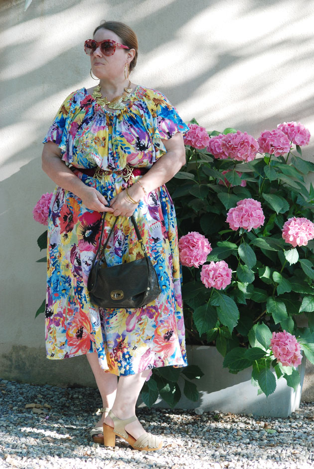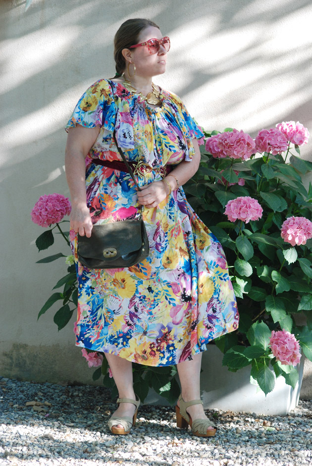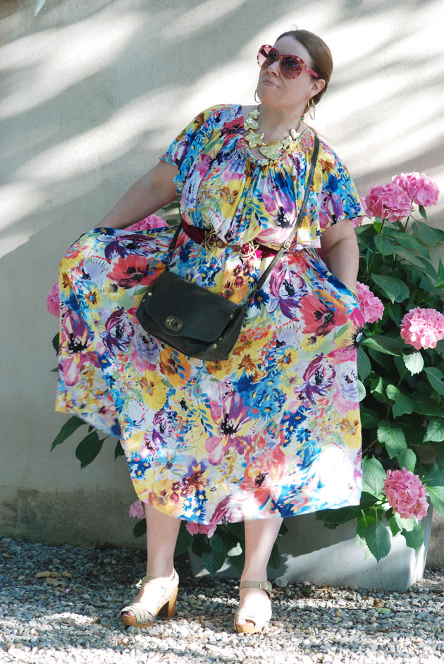 Voici un petit look fleuri estival avec une robe « sac » H&M.