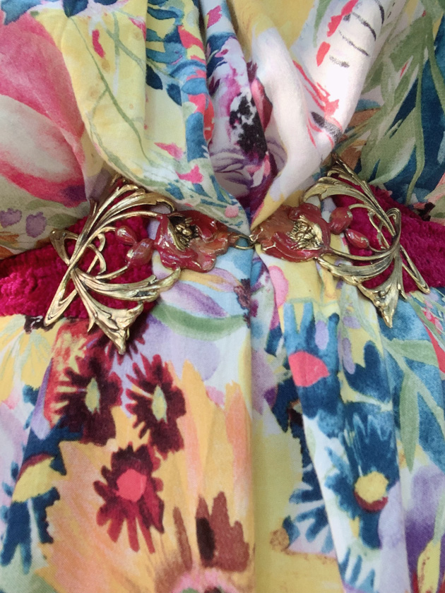 Je l’ai ceinturée avec ma trouvaille vintage en email/laiton Fourdraine.