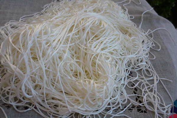 J’ai récupéré aussi des chutes de rideaux de fils, ça fait de très belles tresses.