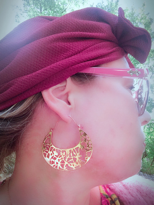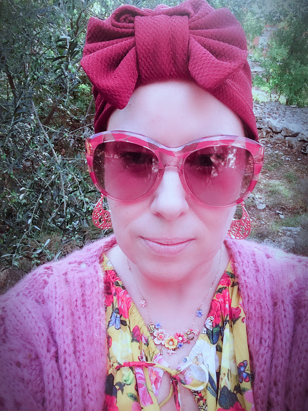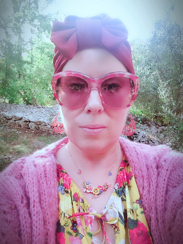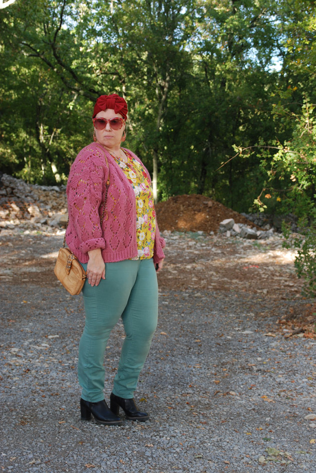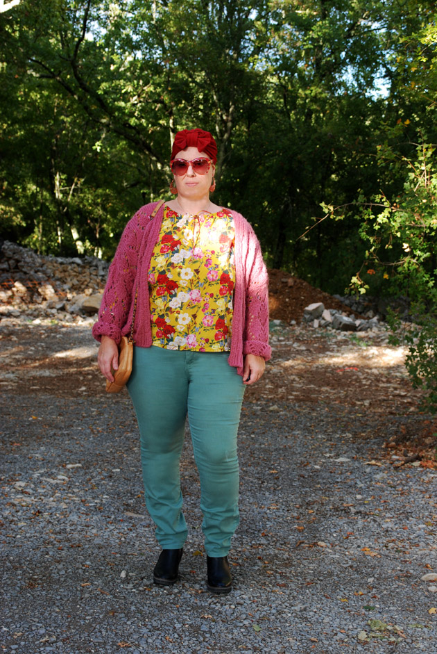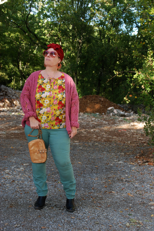 Alors, j’ai voulu vous montrer une association de pièces très colorées, lesquelles, spontanément, n’auraient pas forcément été pensées ensembles et qui pourtant matchent bien niveau colorimétrie. Par contre, je n’avais pas anticipé le côté Madame Irma de mon look, j’ai bien rigolé en voyant les images car je ressemble à une cartomancienne!