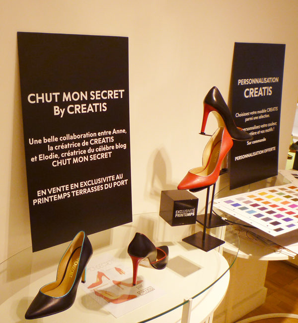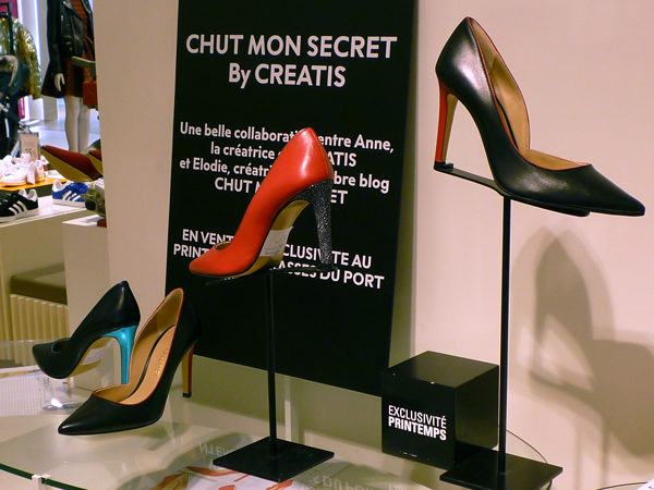 Jeudi soir dernier, ma blogo copine Elodie Van Zele alias Miss Chut Mon Secret inaugurait une collection d’escarpins avec ma créatrice préférée Anne Gilles chez Créatis au Printemps des Terrasses du Port. Un cocktail explosif qui nous assurait de passer une bonne soirée.