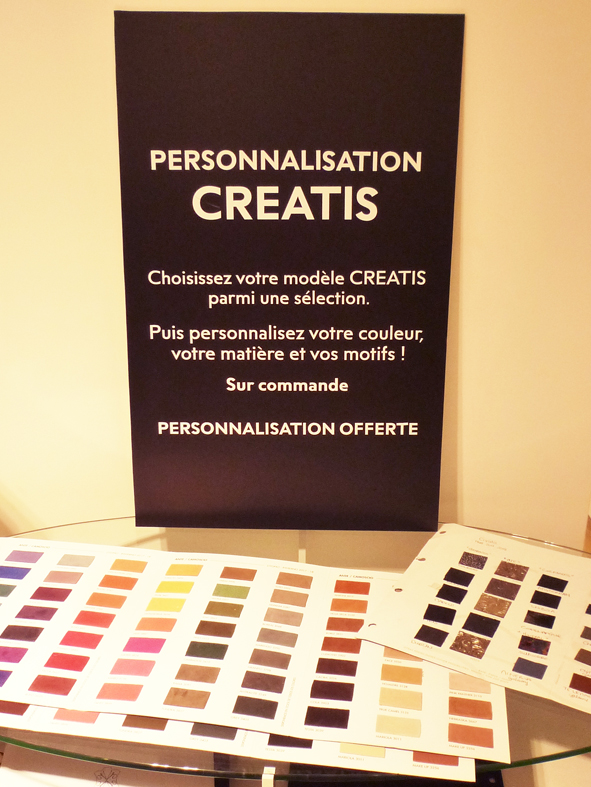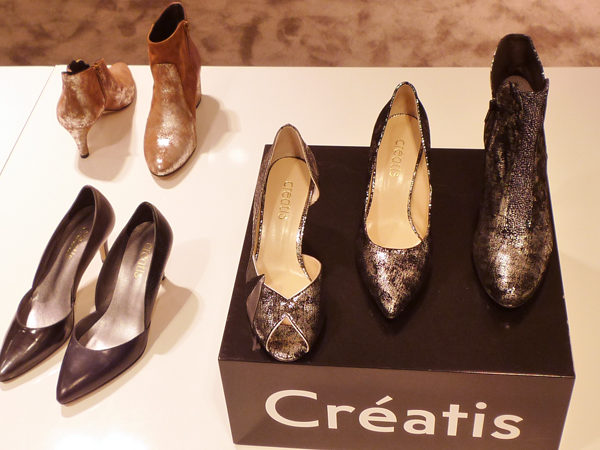 Vous trouverez aussi un podium avec la sublime collection automne hiver. La tendance : du cuir irisé ou gaufré, des coloris de saison avec du noir, de l’argent, du mauve, du cuivré, et un peu de couleurs vives pour respecter la marque de fabrique de Créatis.