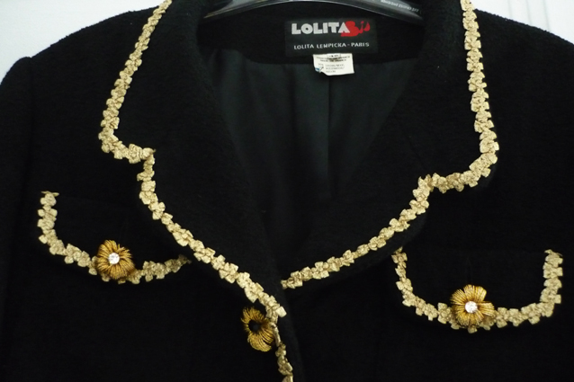 En découvrant une nouvelle adresse vintage dont je vous avais parlé ici, j’avais repéré pas une veste mais LA VESTE, celle chère à mon cœur depuis des années, la « classique » veste en laine bleu marine brodée au fil d’or. J’en cherchais une qui me plaise vraiment depuis au moins 5 ans. A force de tenter en vain de m’en procurer une, j’en avais eu marre et j’avais renoncé à la trouver alors j’en avais conçu une en customisant une veste basique trouvée soldée dans le commerce avec du gallon acheté en mercerie (résultat montré dans cet article). Rien de plus frustrant lorsque l’on croise l’objet tant convoité d’être stoppée par son prix (130€). Mon petit SMIC mensuel ne me permet malheureusement pas beaucoup d’excentricité budgétaire (OK toutes les filles qui ont acheté les Suzanna doivent déjà se foutre de ma gueule pour une somme aussi « modique »). Bon, précisons aussi que j’ai bon goût et que mon œil avisé est tombé sur du Lolita Lempika, ce qui explique aussi le tarif, hein! Donc je me suis forcée à l’oublier durant plusieurs mois…