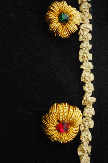 C’est là que j’ai subitement repensé à cette veste, LA VESTE. Avec peu d’illusion qu’elle soit toujours disponible, je suis retournée à la boutique (que je vous recommande d’ailleurs si vous êtes marseillaise ou en visite dans le coin). Lors de notre première rencontre, elle était bien en vue sur le mannequin et la première chose qui me frappa en rentrant dans la boutique c’est qu’elle n’était pas visible. Le vendeur étant occupé avec une cliente, j’ai fouiné les rayons. Et là, j’ai vu dépassé une manche galonnée de doré, j’ai écarté les vêtements la cachant et elle m’avait attendu tout ce temps !!!! Joie et bonheur, j’aurai enfin cette année la chance de me faire un cadeau dont je me rappellerai longtemps.