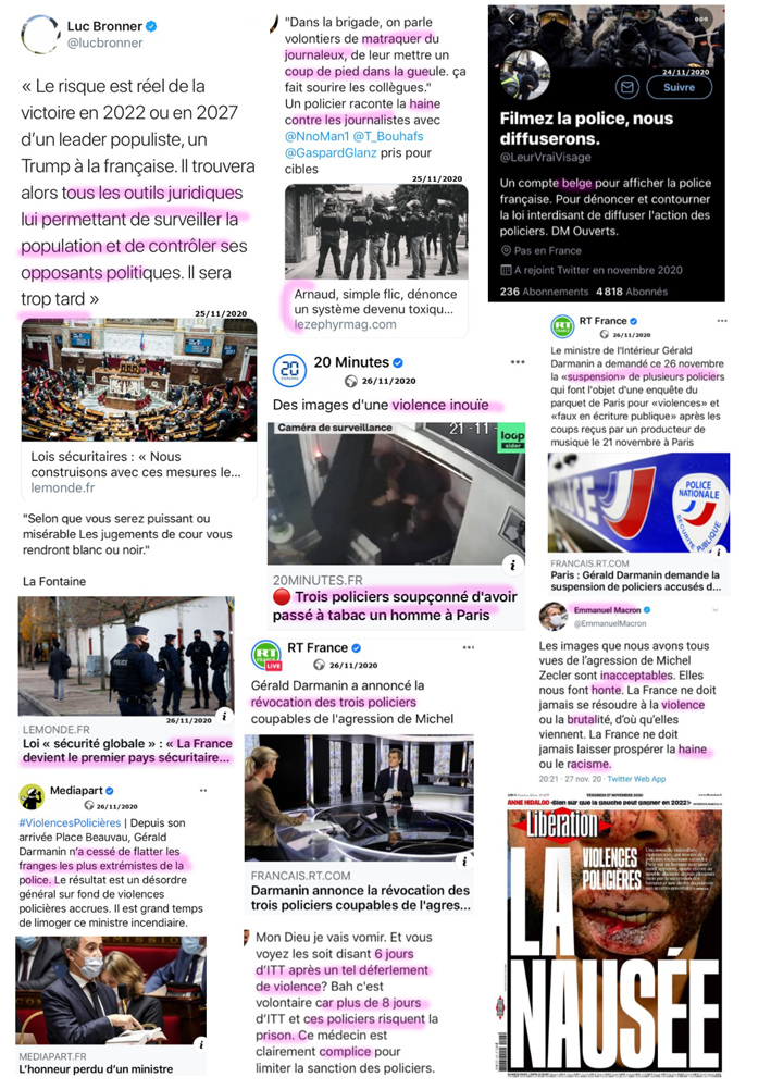 Bleu = positif / Noir = neutre / Rouge = négatif