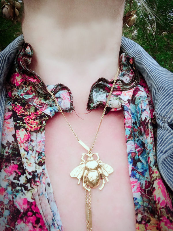 Mon collier en forme d’abeille est issu des collections de Lotta & Djossou Paris.