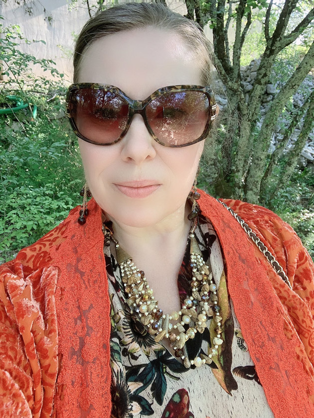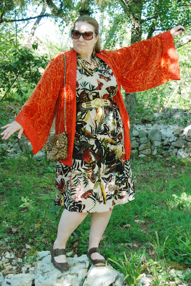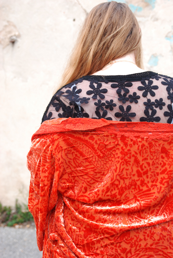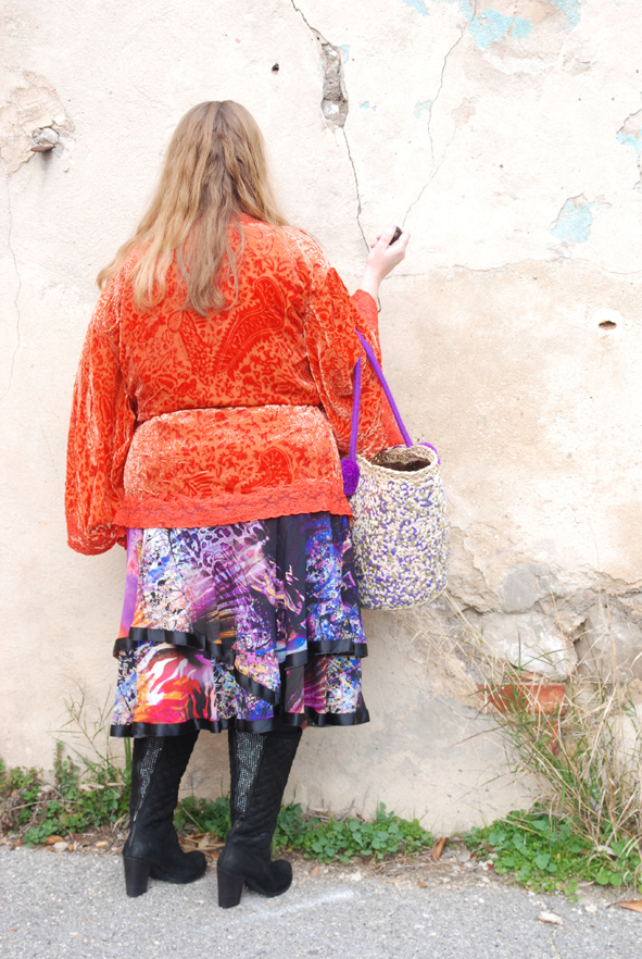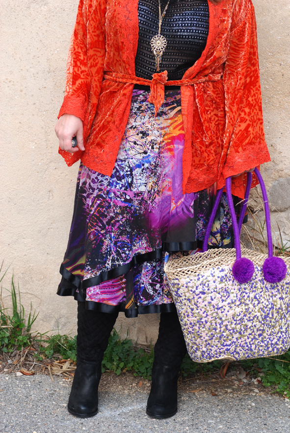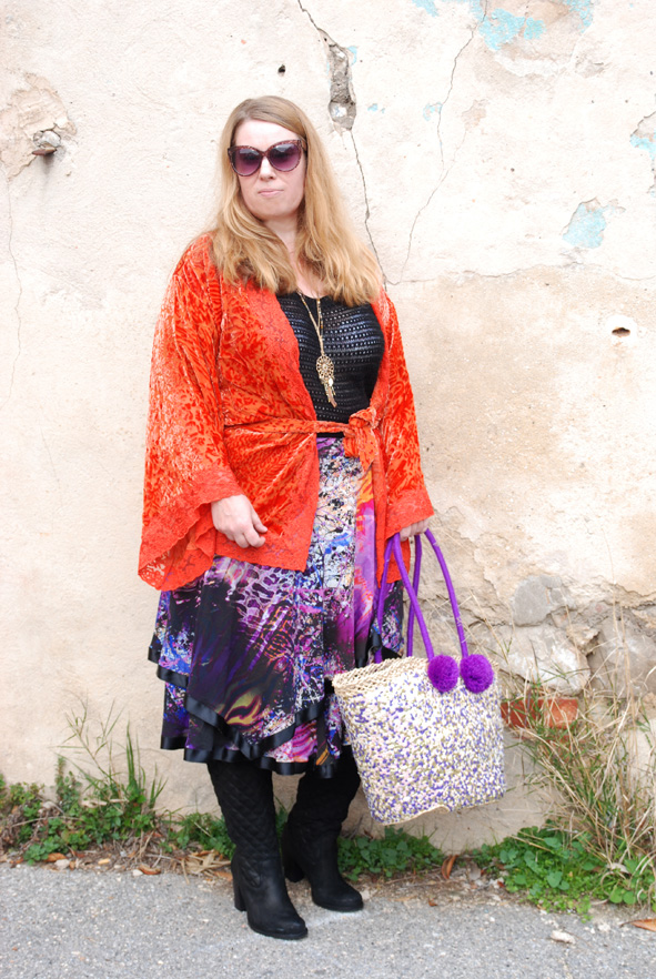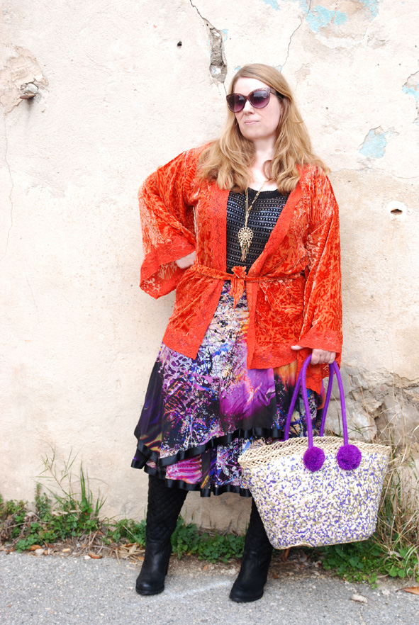 Il fait encore bon dans le sud mais j’ai rajouté un kimono en velours dévoré.