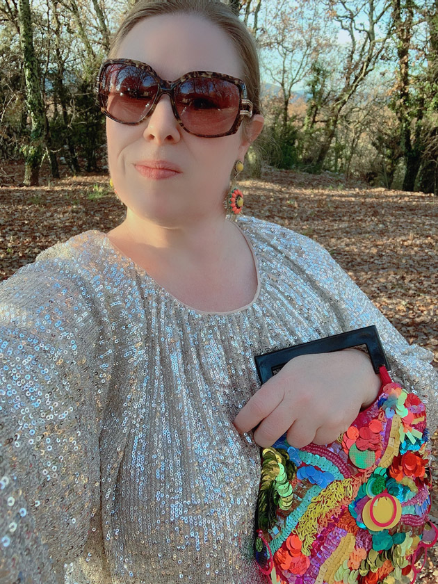 Je porte ici une tenue complète à moins de 100€ avec une robe à sequins