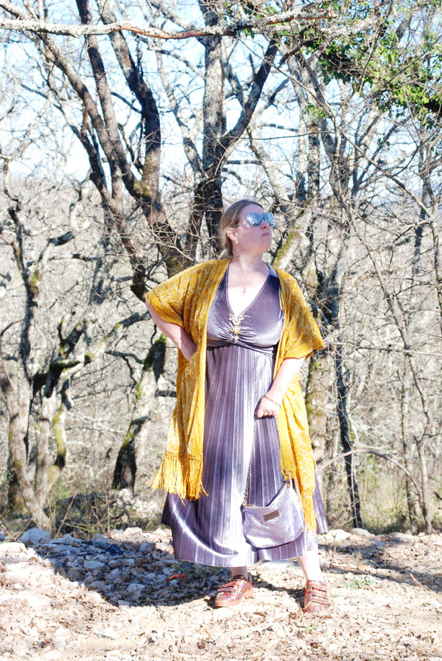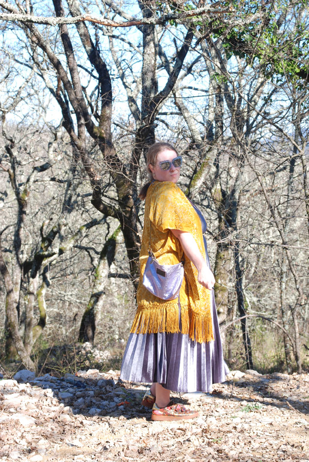 Il fait encore bon dans le sud mais j’ai rajouté un kimono en velours dévoré.