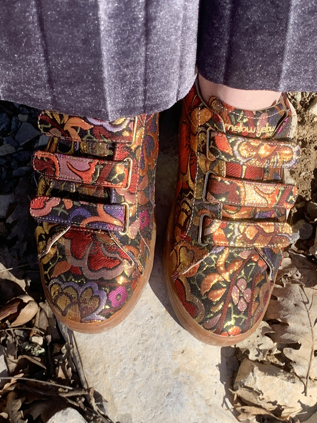 baskets multicolores Mellow Yellow en brocart.