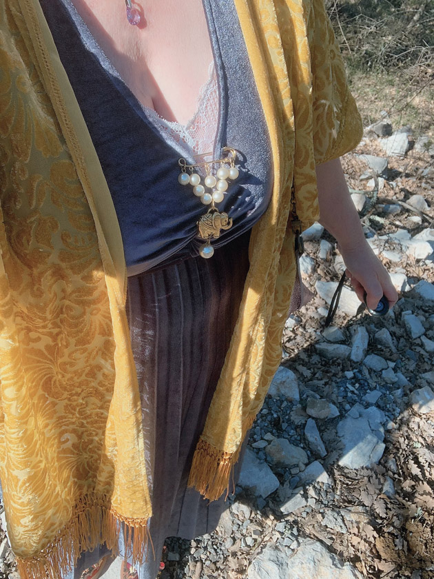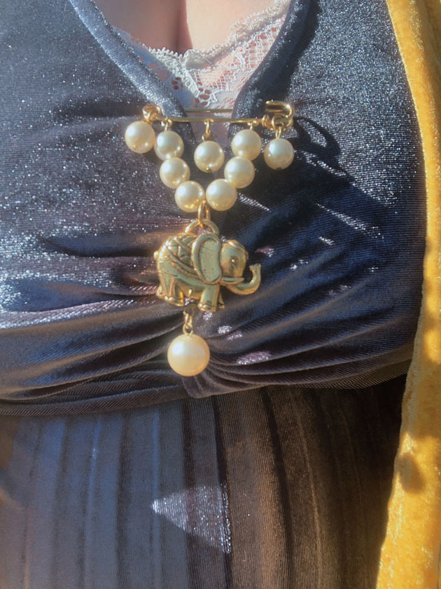 pas finir à moitié nue, en attendant j’ai mis un caraco et une broche vintage .