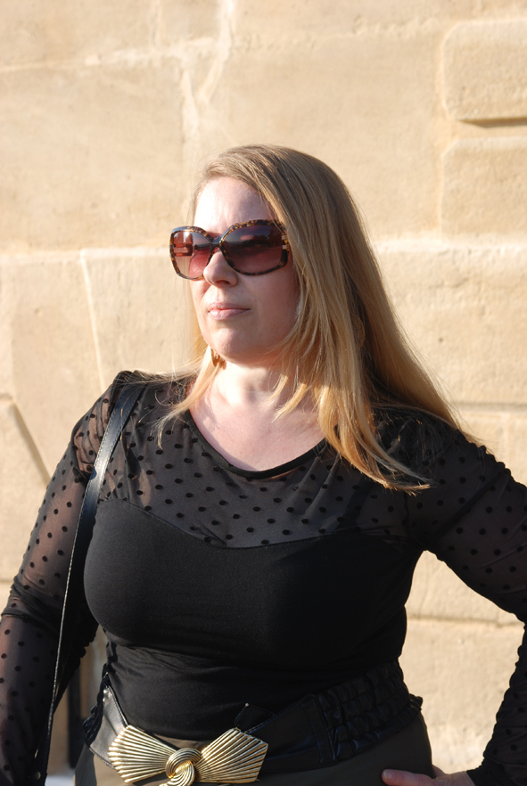 La seule nouveauté de cette tenue est mon sac Roberta Minelli que je me suis commandée sur Showroomprivé pour mon anniversaire. Il est très joli mais j’ai été très déçue en le recevant car on m’a fait parvenir le mauvais modèle par erreur… Bon chez Showroomprivé, ils sont très pros, en cas de soucis je vous conseille de joindre Enzo sur twitter ou FB, il vous répond très vite. Comme je ne voulais pas le renvoyer car cela aurait été synonyme de me priver de mon cadeau, ils m’ont gentiment offert un bon d’achat de la moitié de la valeur du sac en compensation.