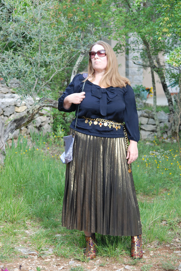 basique noir avec une jupe longue mordorée que j’ai