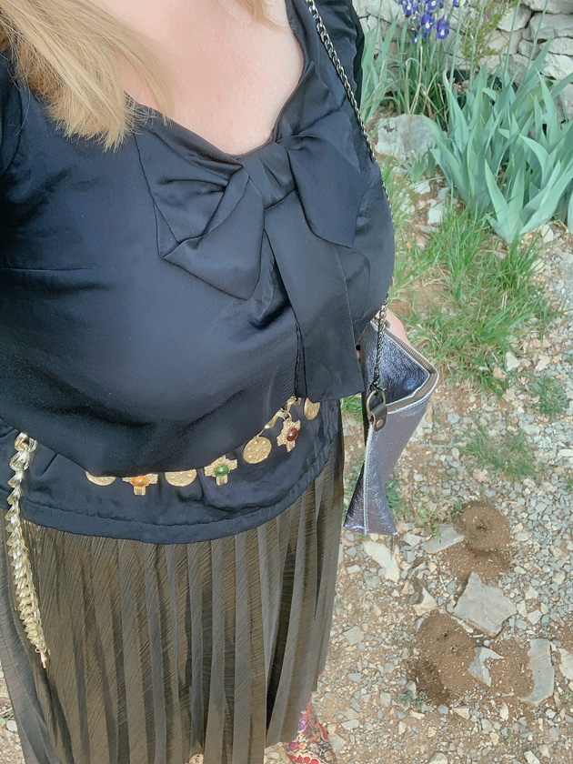 accessoirisée avec une ceinture bijoux vintage.